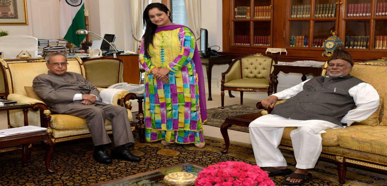 The President of India, Shri Pranab Mukherjee meeting the Managing Director, Jangipur Bengal Mega Food Park Ltd., Shri Amirul Islam and Shri Azizur Rahman, at Rashtrapati Bhavan, in New Delhi on July 14, 2015.