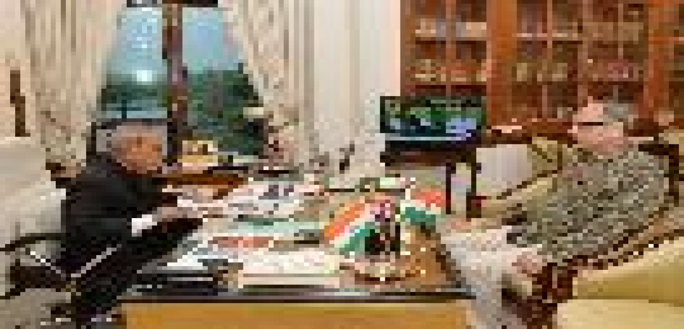 The President of India, Shri Pranab Mukherjee meeting the former Union Minister of Railways, Shri C.K. Jaffer Sharief, at Rashtrapati Bhavan, in New Delhi on July 13, 2015.