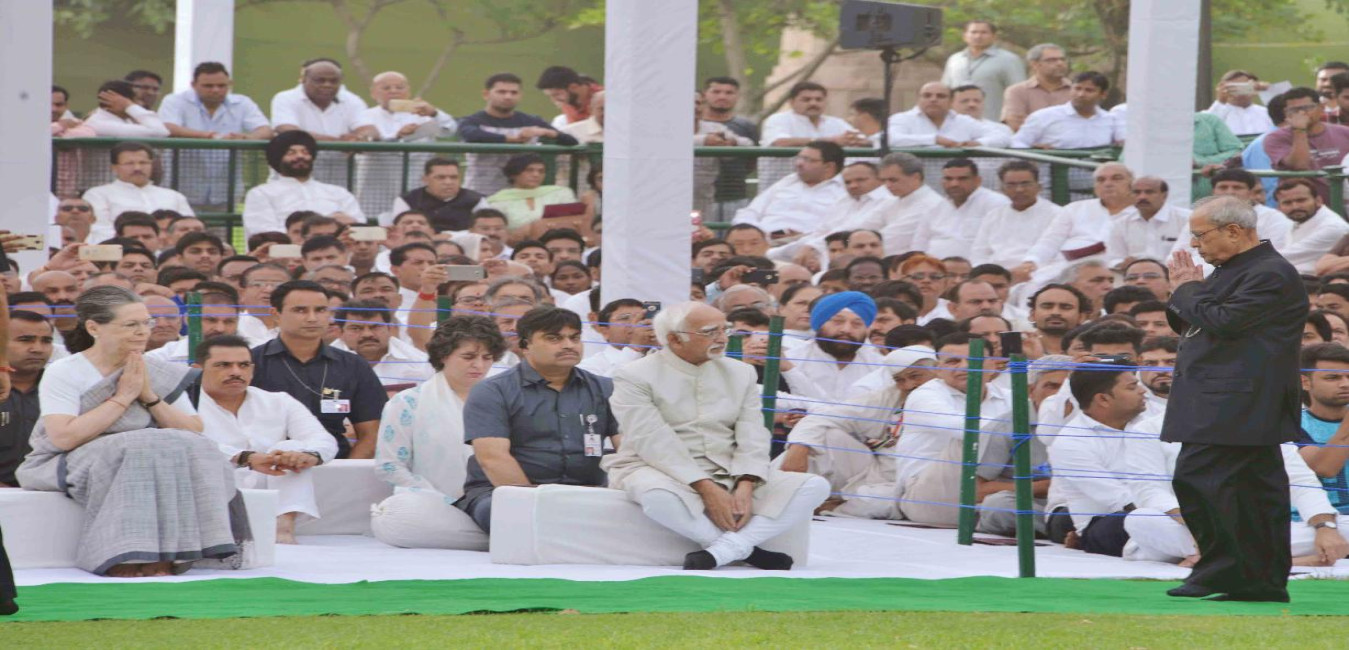 The President of India, Shri Pranab Mukherjee paying floral tributes at the Samadhi of the former Prime Minister of India, Late Shri Rajiv Gandhi on the occasion of his 26th Death Anniversary at Vir Bhumi, in New Delhi on May 21, 2017.