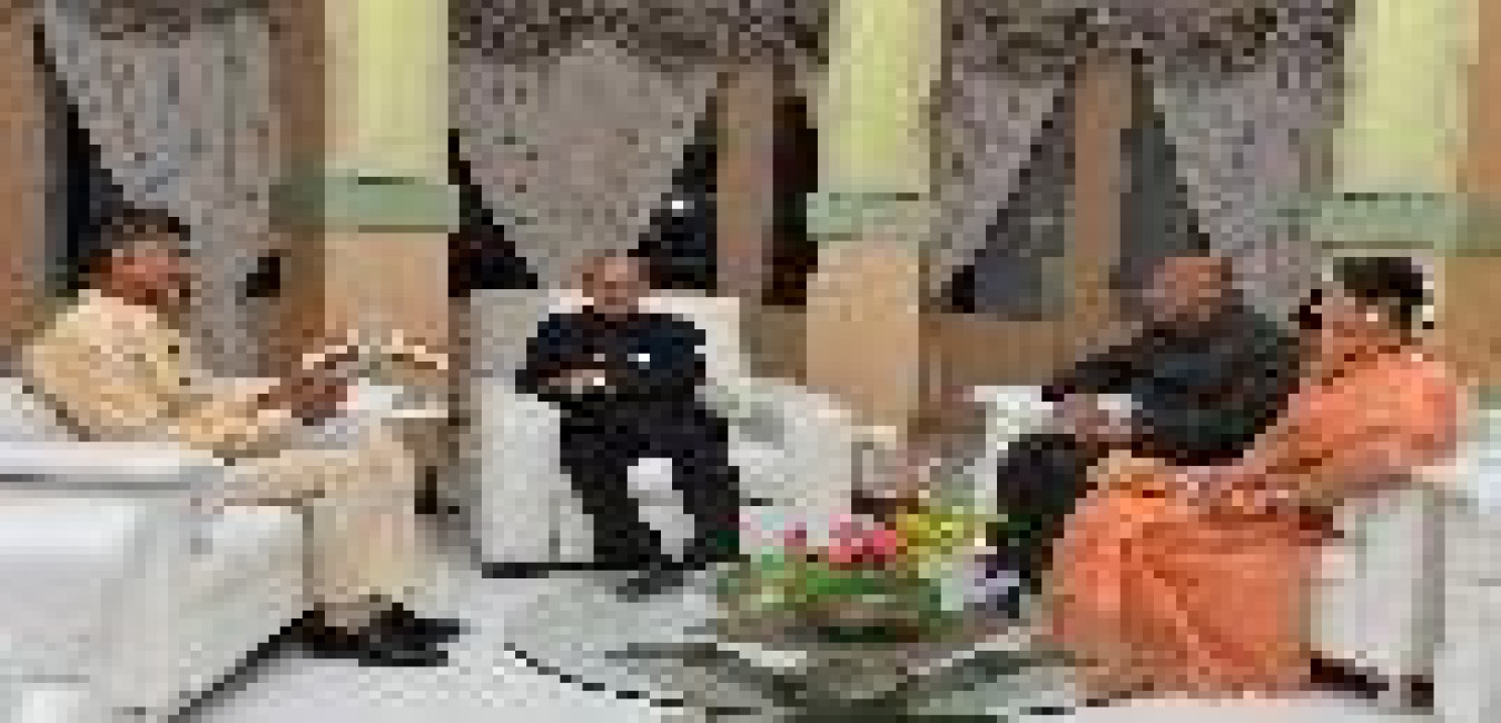 The President of India, Shri Pranab Mukherjee meeting Smt. & Shri N. Dharam Singh, the former Chief Minister of Karnataka, at Rashtrapati Nilayam, Bolarum, in Secunderabad on June 30, 2015.