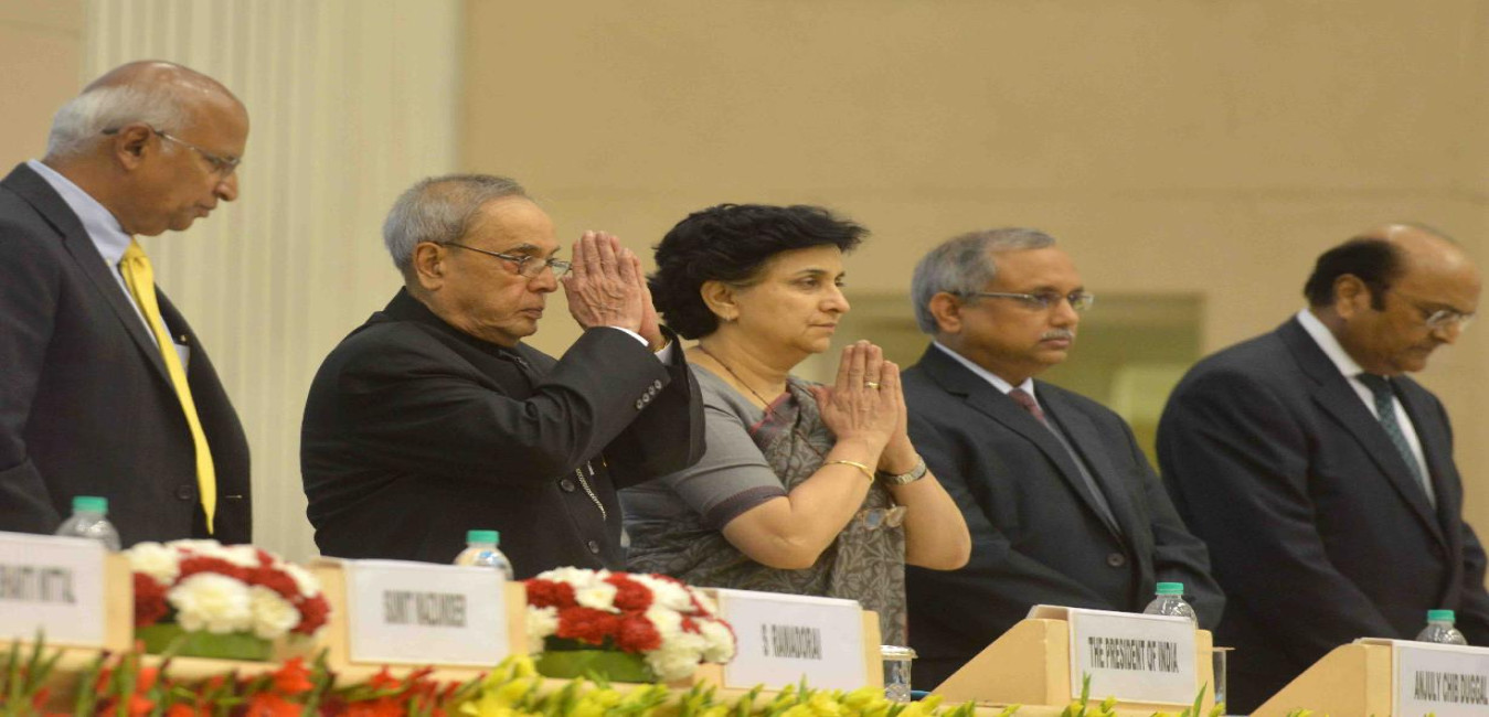 The President of India, Shri Pranab Mukherjee attending the National Summit on CSR on the theme 'Boardroom and Beyond', organized by the Confederation of Indian Industry (CII), in New Delhi on April 29, 2015.