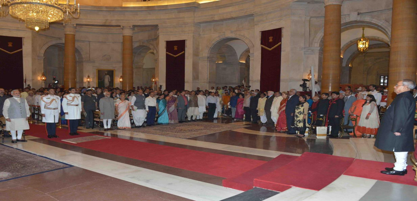 The President of India, Shri Pranab Mukherjee during Civil Investiture Ceremony, at Rashtrapati Bhavan, in New Delhi on April 08, 2015.