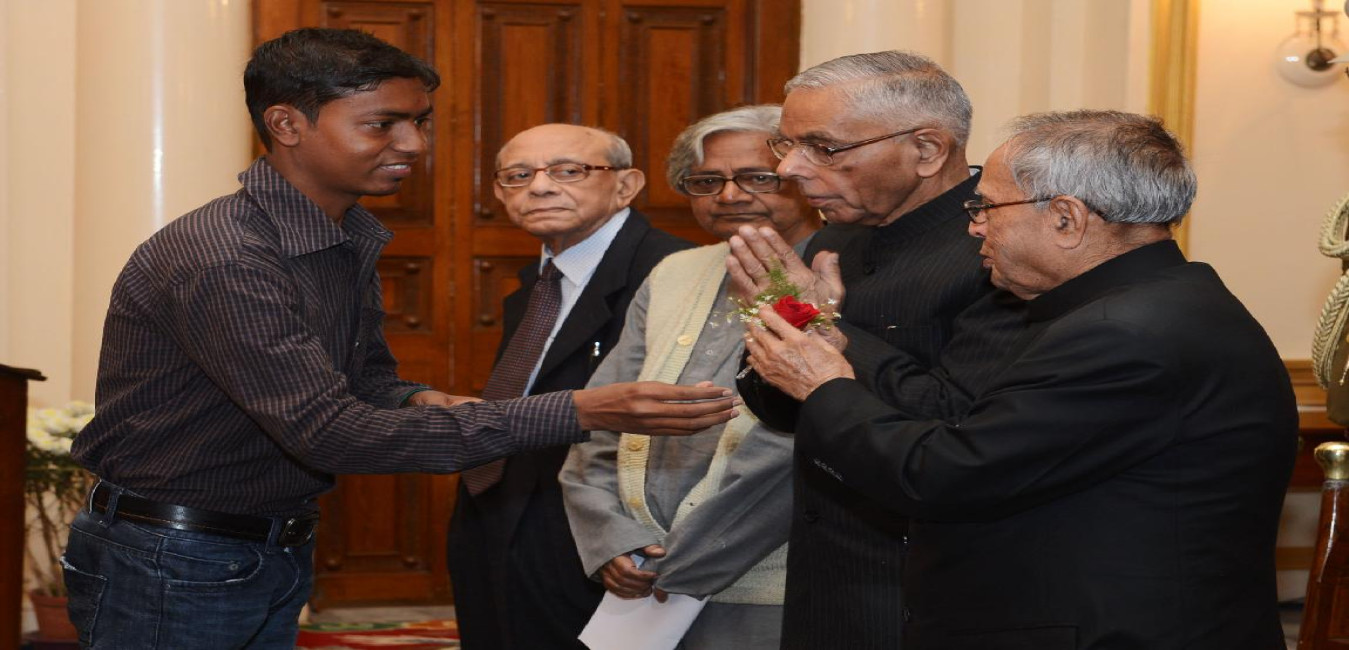 The President of India, Shri Pranab Mukherjee presenting the Sunil Gangopadhyay Memorial Award for Excellence in Bengali Literature to Eminent Poet and Litterateur to Shri Nirendranth Chakravarty and Shri Sankha Ghosh for the year 2012 at Raj Bhavan of Kolkata in West Bengal on Jan 11, 2014