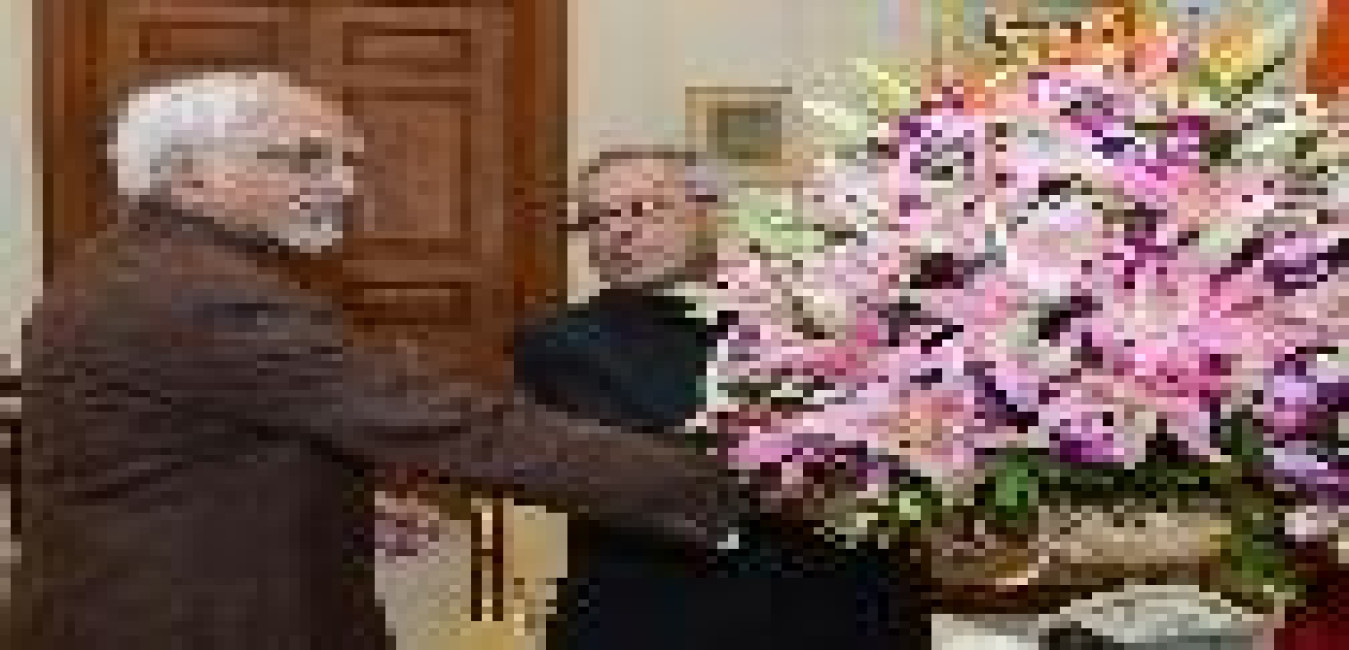 The President of India, Shri Pranab Mukherjee receiving Birthday Greeting from the Prime Minister of India, Dr Manmohan Singh at Rashtrapati Bhavan in New Delhi on Dec 11, 2013