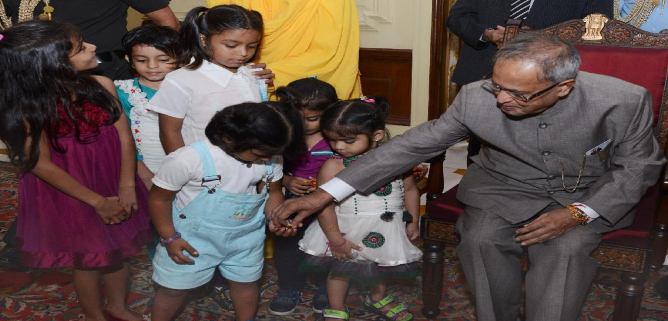 The President of India, Shri Pranab Mukherjee Meeting with the Children from Vatsalya Gram, Param Shaktipeeth Vrindavan on the Occasion of Rakhi at Rashtrapati Bhavan on Aug 24, 2013