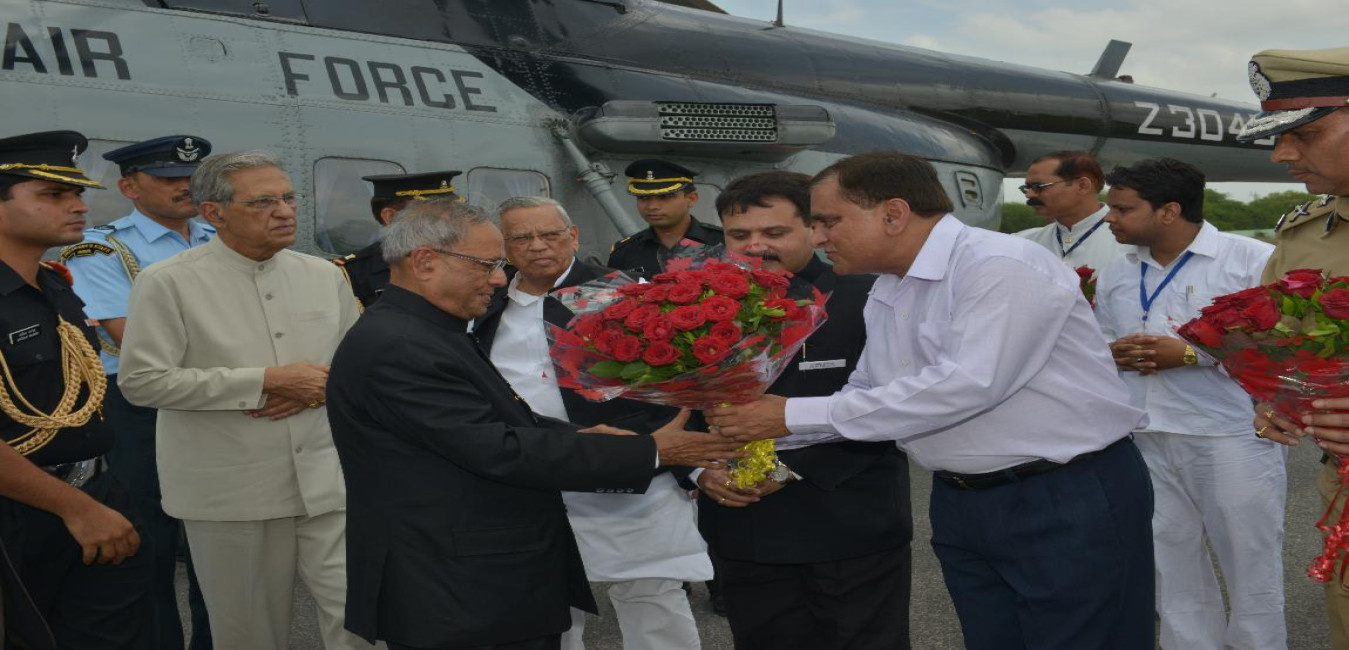 The President of India Shri Pranab Mukherjee Arriving at Kanpur Airport on July 05, 2013
