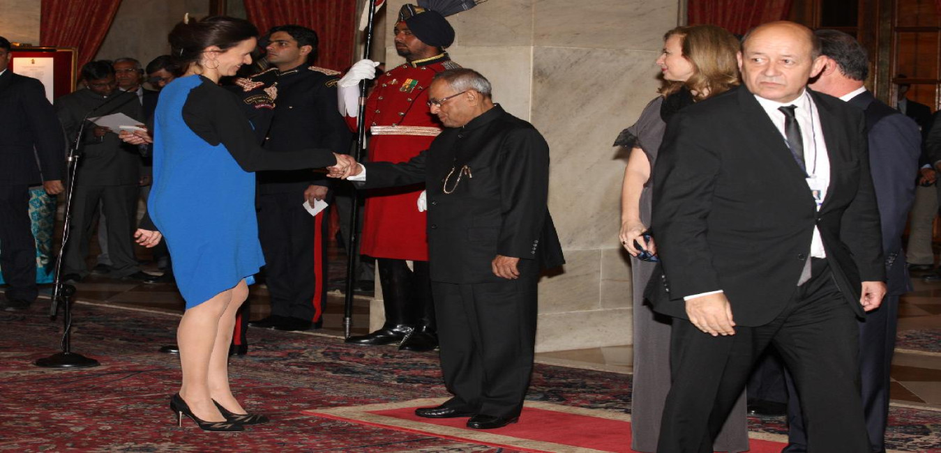 The President of India, Shri Pranab Mukherjee Called by HE Mr Francois Hollande President of the Republic of France and Ms Valerie Trierweiler on Feb 14, 2013