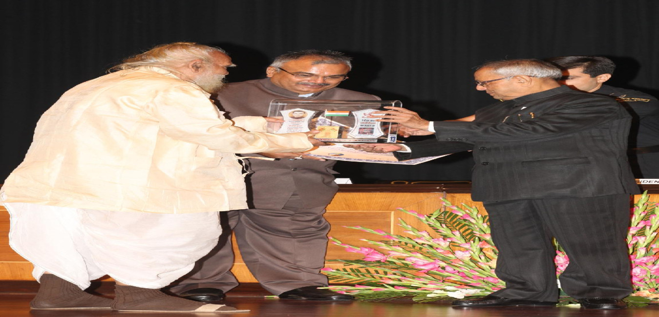 The President of India, Shri Pranab Mukherjee presenting The Dinkar Sahitya Samman, at Rashtrapati Bhavan on November 23, 2012