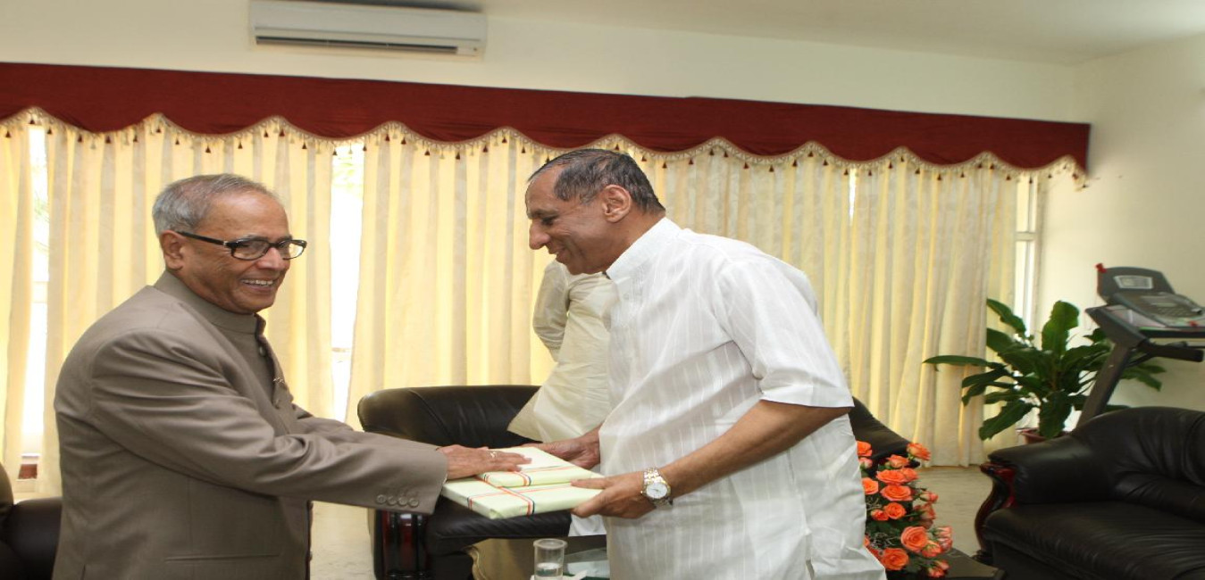 The President of India, Shri Pranab Mukherjee Receiving presentation Memento by The Governor & The Chief Minister of Andhra Pradesh on Sep 9, 2012
