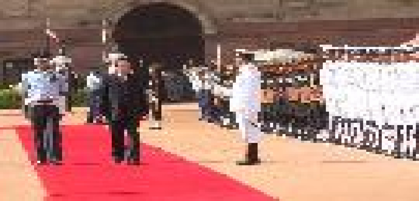 The President of India, Smt Pratibha Devisingh Patil at the Ceremonial Reception in Honour of the President of Nepal, HE Dr Ram Baran Yadav at Forecourt of Rashtrapati Bhavan in New Delhi on Feb 16, 2010