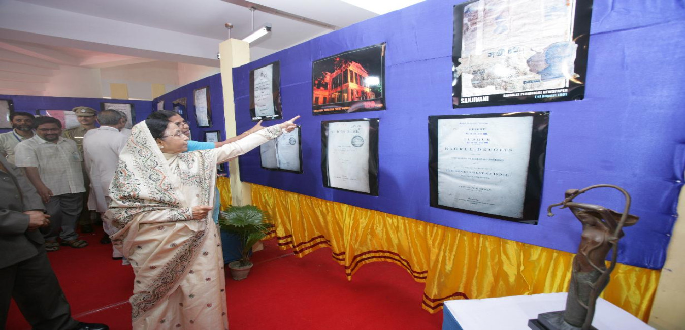The President of India, Smt Pratibha Devisingh Patil having a look at rare and valuable publications of the Asiatic Society at Kolkata in West Bengal on Aug 23, 2008