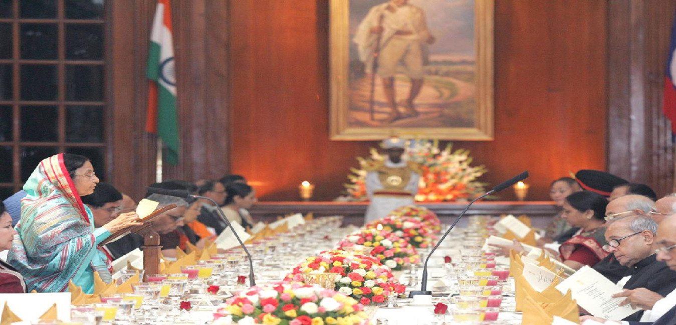 The President of India, Smt Pratibha Devisingh Patil at the Banquet Hosted in Honour of the President of the Lao People's Democratic Republic, His Excellency Mr Choummaly Sayasone at Rashtrapati Bhavan in New Delhi on Aug 27, 2008