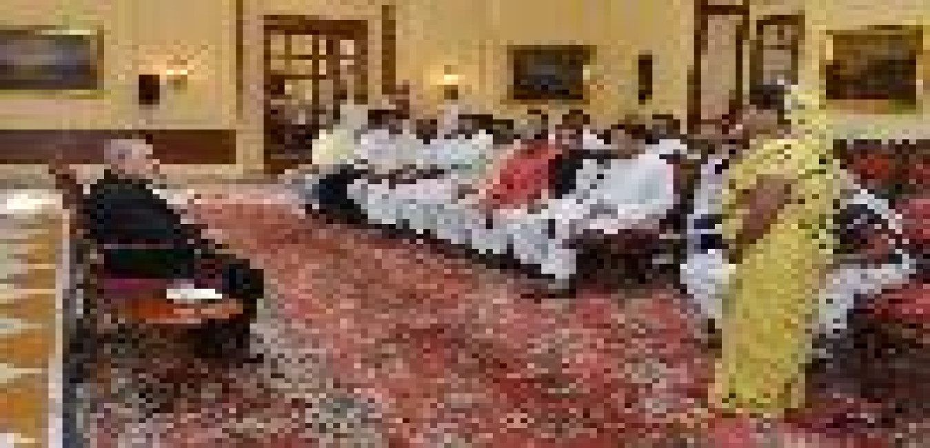 The President of India, Shri Pranab Mukherjee meeting with Shri Radheyshyam Biswas, MP (LS), Shri Bishnu Pada Ray, MP (LS), Shri Ripur Bora, MP (RS), Shri Naba (Hira) Kumar Sarania, MP (LS), Shri Shorup Mohan Das and others from Stasang India, at Rashtrapati Bhavan on April 04, 2017.
