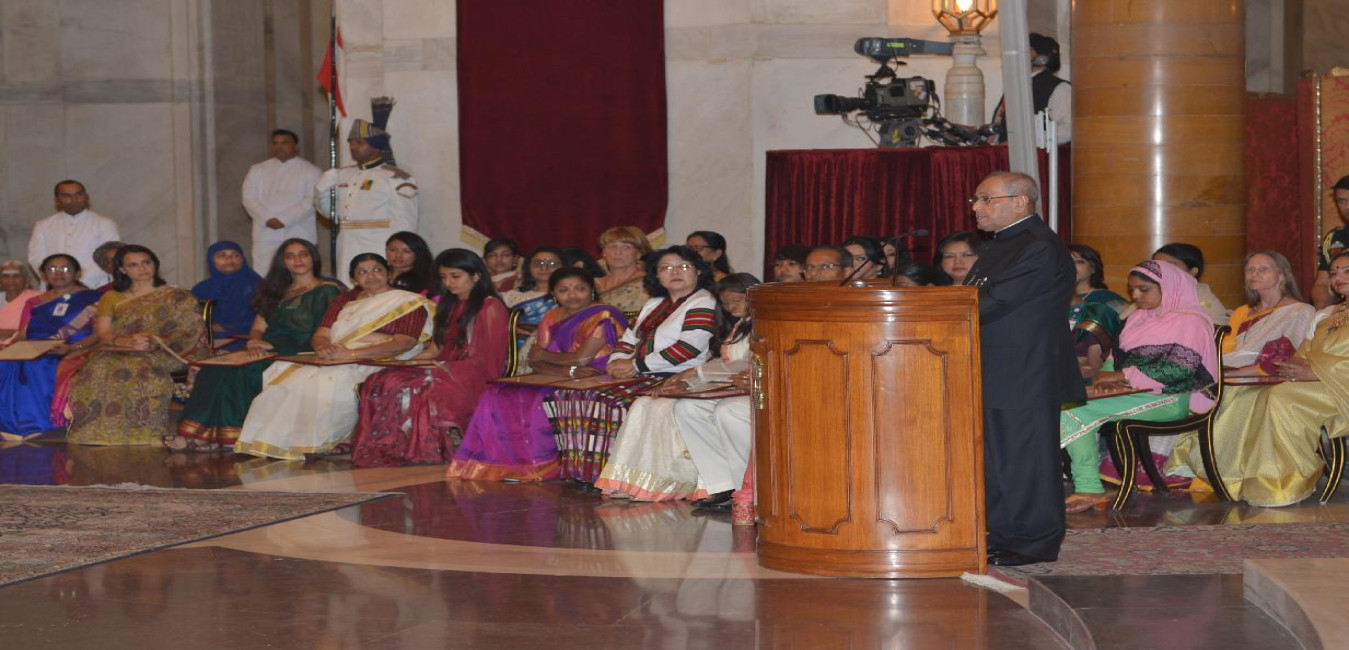 The President of India, Shri Pranab Mukherjee presenting the Nari Shakti Puraskars for the year 2016, on the occasion of International Women s Day, at Rashtrapati Bhavan on March 08, 2017.
