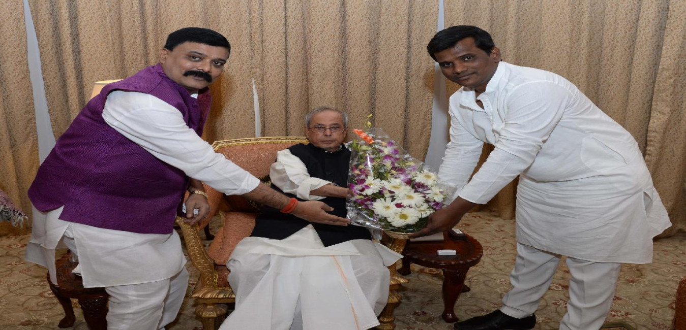 The President of India, Shri Pranab Mukherjee meeting with Shri D. Ravindra Naik, former Minister of AP alongwith a delegation of Traditional Banjara Tribals and All India Adivasi Banjara Sammelan, at Rashtrapati Nilayam, Bolarum, in Secunderabad on December 27, 2016.