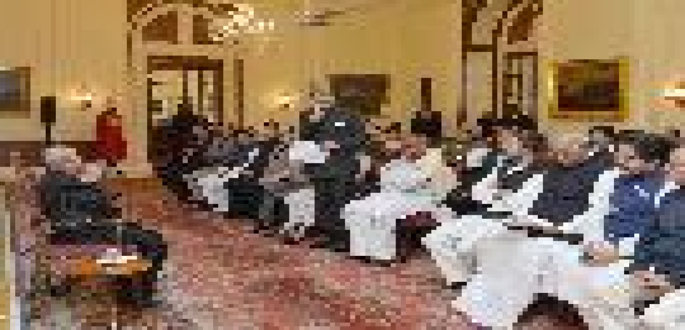 The President of India, Shri Pranab Mukherjee meeting with Shri Ghulam Nabi Azad, Leader of Opposition, Rajya Sabha alongwith a delegation of Leaders and MPs (Lok Sabha & Rajya Sabha) from 17 Political Parties, at Rashtrapati Bhavan on December 01, 2016.