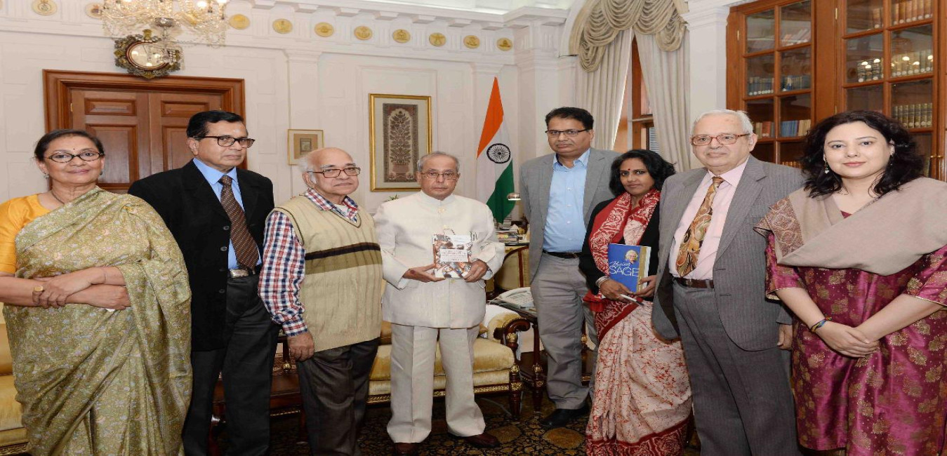 The President of India, Shri Pranab Mukherjee meeting with Shri Krishnendu Ghosh with others from Kolkata, at Rashtrapati Bhavan on November 28, 2016.