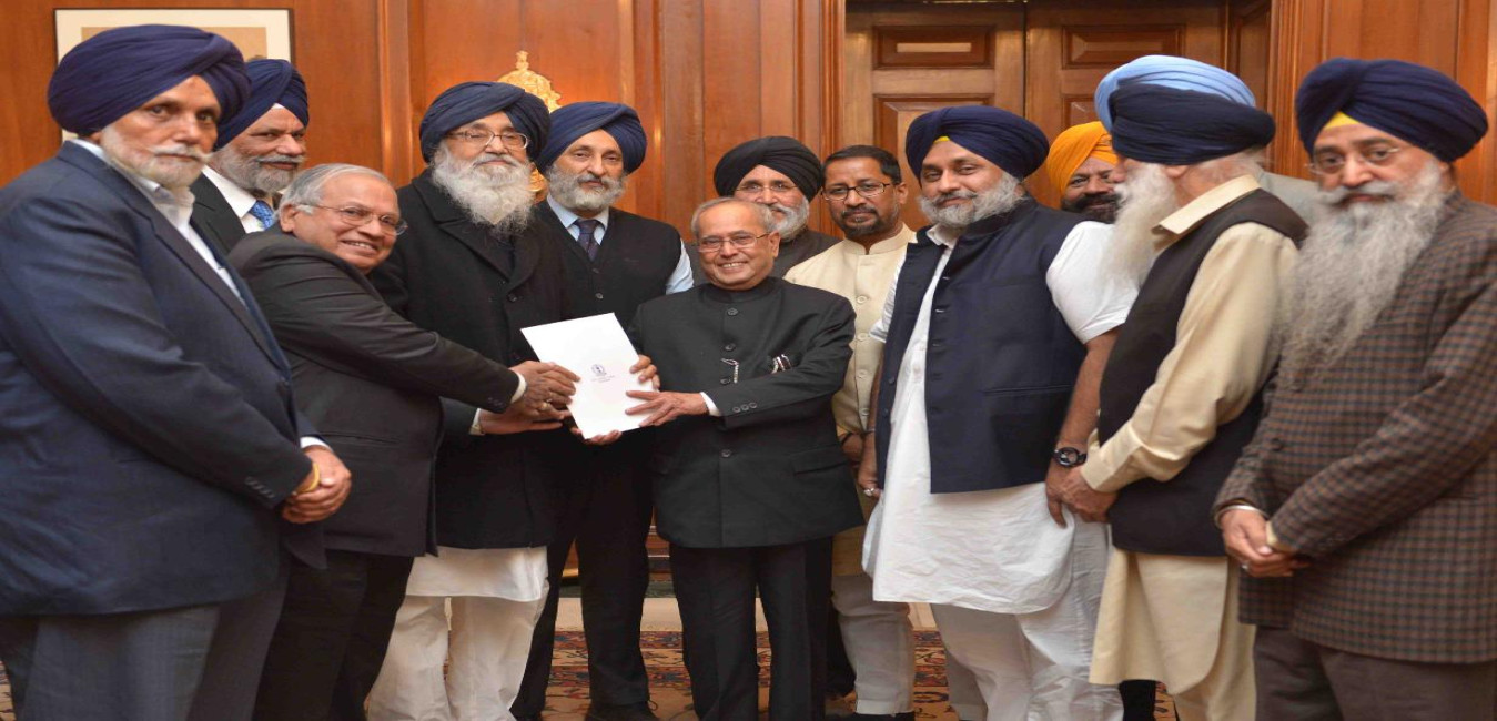 The President of India, Shri Pranab Mukherjee meeting with Shri Prakash Singh Badal, Chief Minister of Punjab along with the Council of Ministers and others, at Rashtrapati Bhavan on November 28, 2016.
