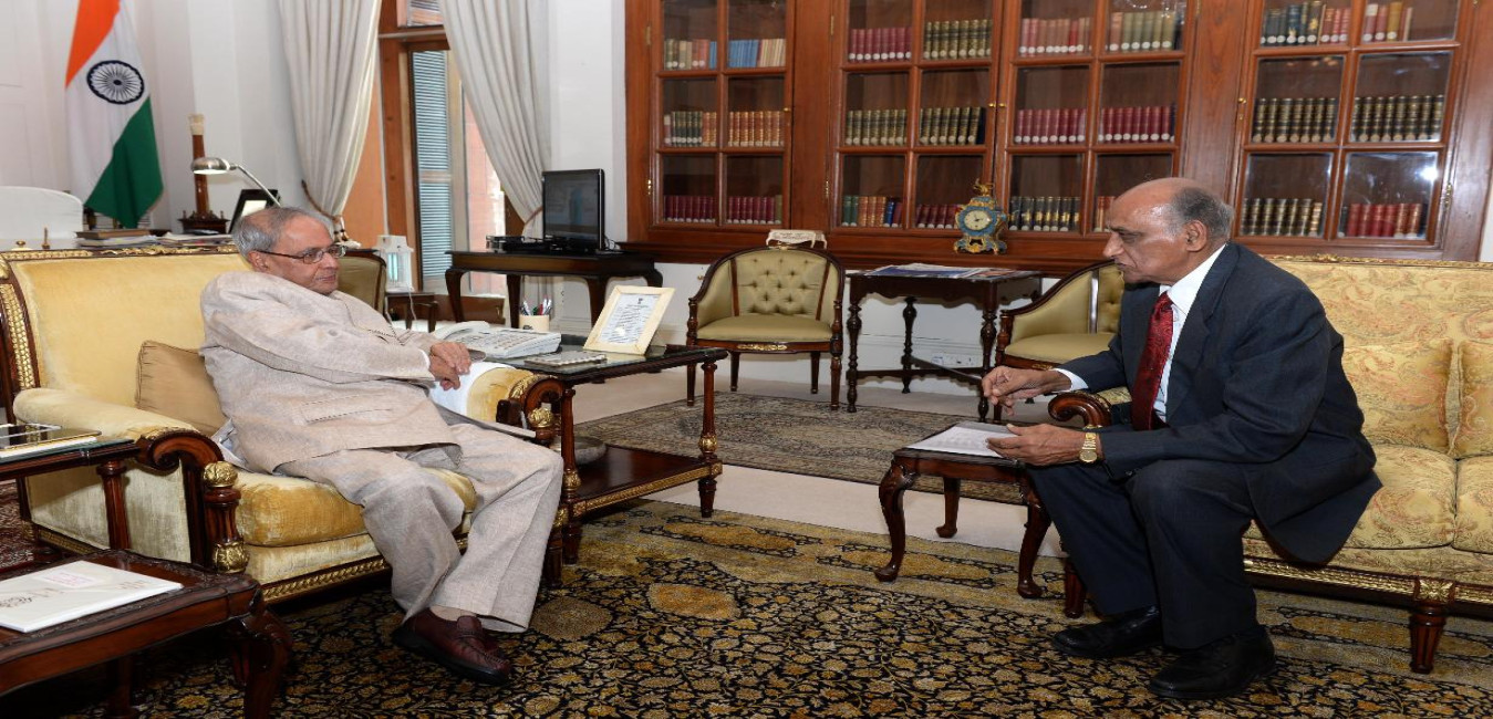 The President of India, Shri Pranab Mukherjee meeting with Shri Shivshankar Menon, former National Security Advisor, at Rashtrapati Bhavan on November 18, 2016.
