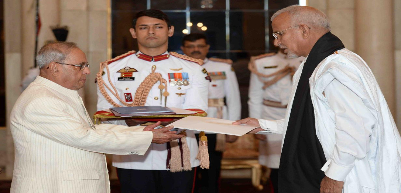 The Ambassador-designate of Mauritania, H.E. Mr. Sidi Mohamed Hanene presenting his credentials to the President of India, Shri Pranab Mukherjee, at Rashtrapati Bhavan on October 12, 2016.