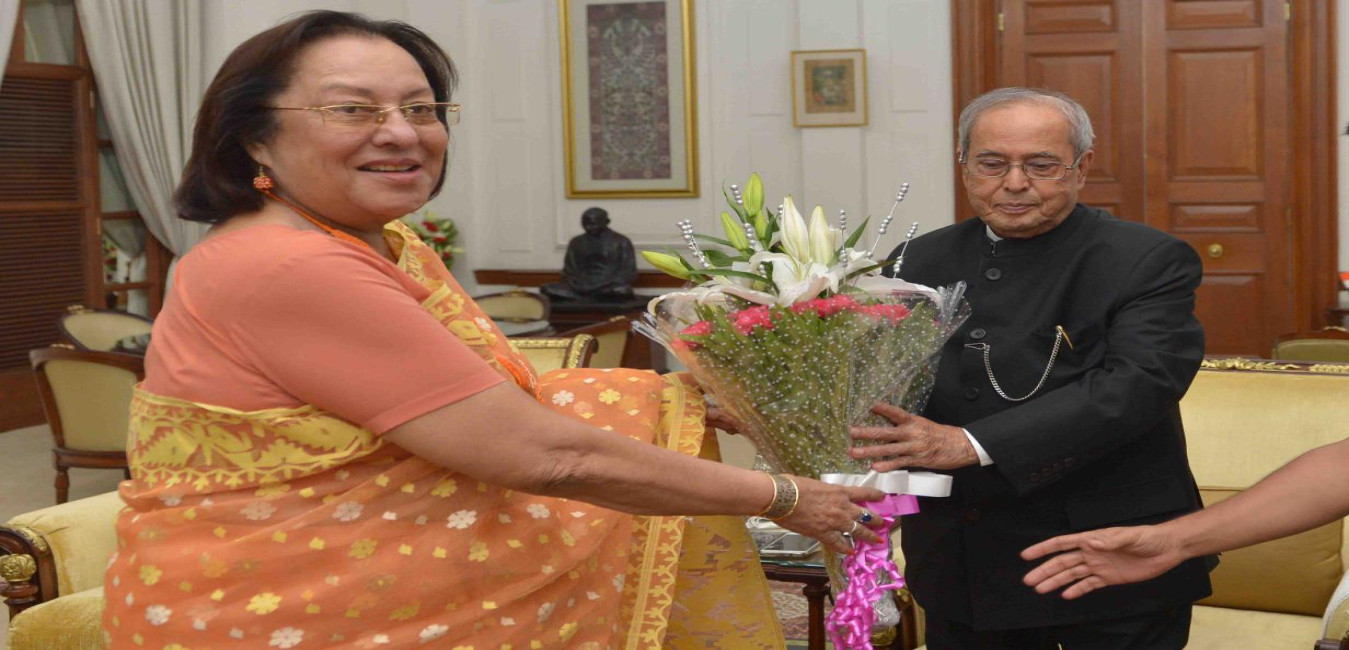 The President of India, Shri Pranab Mukherjee meeting with Smt. & Shri Swaraj Thapa alongwith their daughters Ms. Swikriti & Sarahna, at Rashtrapati Bhavan on July 01, 2017.