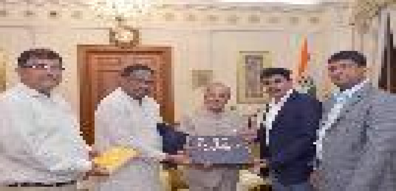 The President of India, Shri Pranab Mukherjee meeting with Shri Ashok Singh, National Vice President, INTUC & Member, Kendriya Hindi Samiti alongwith Nawab Jamin Sahib, Chairman, Indo-Iran Persian Cultural Board, Faizabad, at Rashtrapati Bhavan on August 10, 2016.