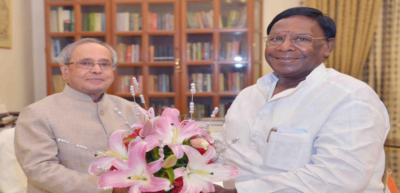 The President of India, Shri Pranab Mukherjee meeting with Shri V. Narayanasamy, Chief Minister of Puducherry, at Rashtrapati Bhavan on August 10, 2016.