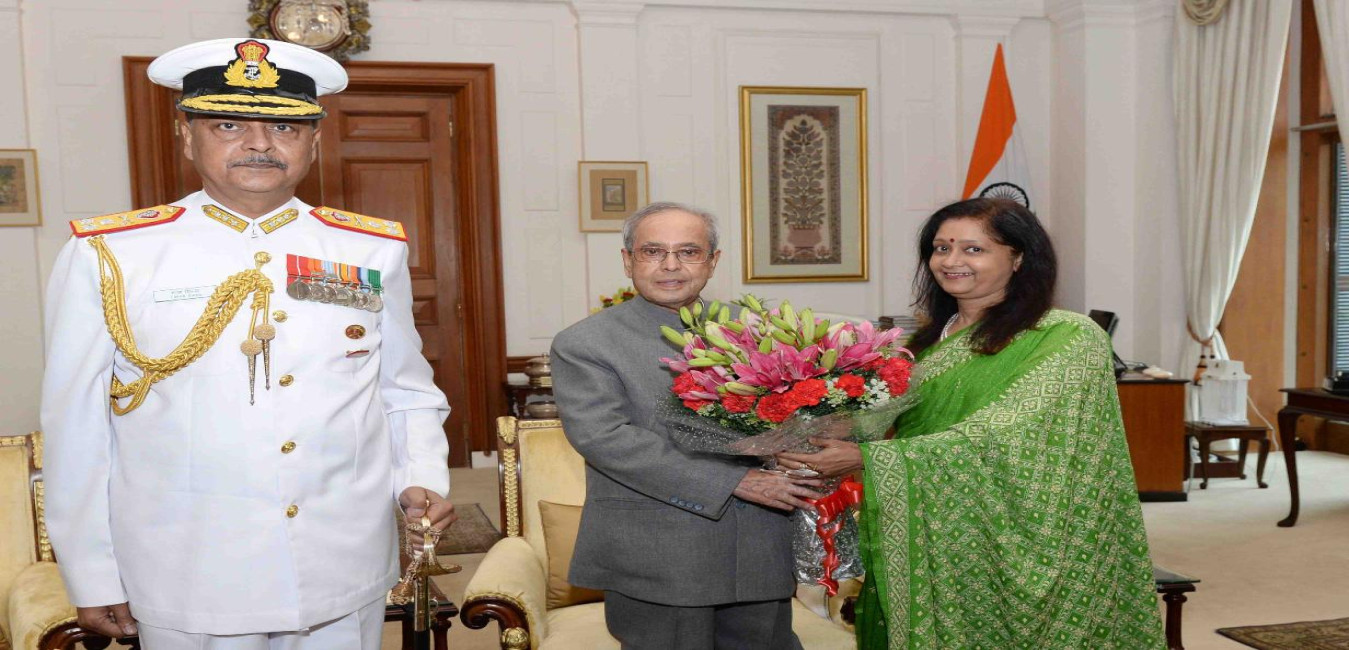 The President of India, Shri Pranab Mukherjee meeting with Surg Vice Admiral Tapan Sinha, SM, PHS, DGMS (Navy) & Hony Surgeon to the President alongwith Smt. Sujata Sinha, at Rashtrapati Bhavan on May 09, 2016.