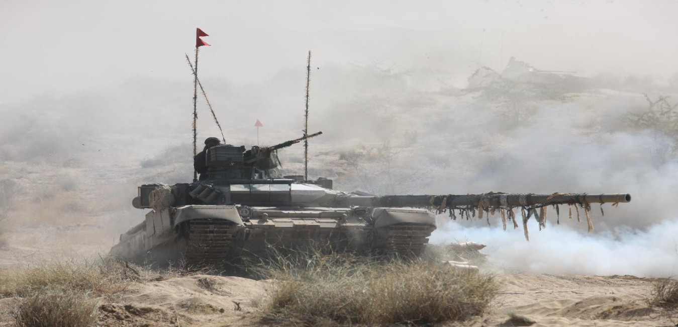 The President of India, Smt Pratibha Devisingh Patil at T-90 Tank during the Strike Corps Offensive Operation by GOC-in C Southern Command and GOC 21 Corps at Pachpadra in Rajasthan on Dec 05, 2011