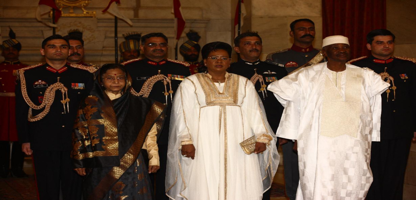 The President of India, Smt Pratibha Devisingh Patil at the Banquet Hosted in Honour of the President of the Republic of Mali, HE Mr Amadou Toumani Tour and his wife Mrs Toure Lobbo Ttraore at Rashtrapati Bhavan in New Delhi on Jan 11, 2012