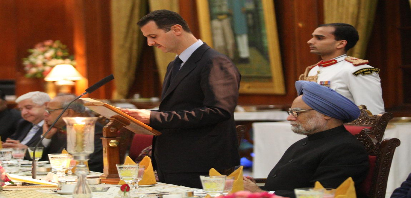 The President of India, Smt Pratibha Devisingh Patil at the Banquet Hosted in Honour of the President of Syrian Arab, HE Dr Bashar Al-Assad at Rashtrapati Bhavan in New Delhi on June 18, 2008