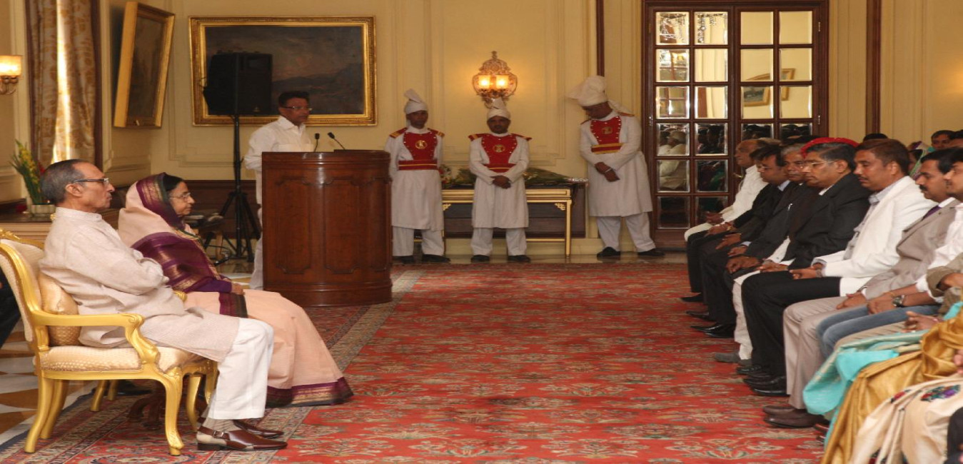 The President of India, Smt Pratibha Devisingh Patil interacting with the Members Delegation from Amravati Chamber of Commerce at Rashtrapati Bhavan in New Delhi on March 07, 2011