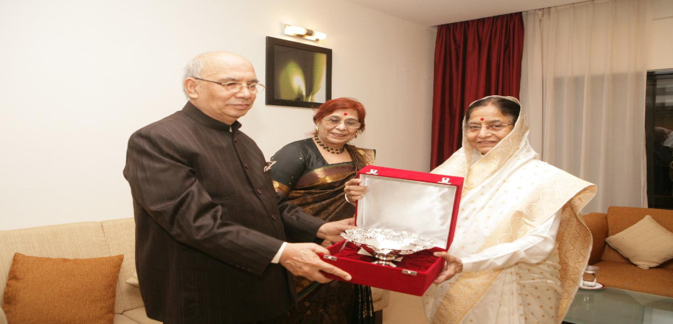 The President of India, Smt Pratibha Devisingh Patil exchanging the Gifts with the Governor of Karnataka, Shri Hansraj Bhardwaj at Raj Bhavan in Karnataka on Dec 08, 2010