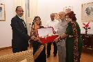 The President of India, Smt Pratibha Devisingh Patil at the Vishwa Konkani Ekta Divas and honouring one of the members of the Konkani organisations from around the world, during the Vishwa Konkani Ekta Divas at Mangalore in Karnataka on Dec 09, 2010