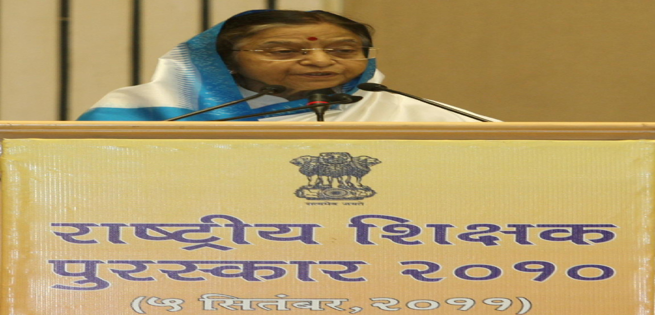 The President of India, Smt Pratibha Devisingh Patil presenting the National Award for Teacher-2010, on the occasion of Teacher s Day at Vigyan Bhavan in New Delhi on Sep 05, 2011