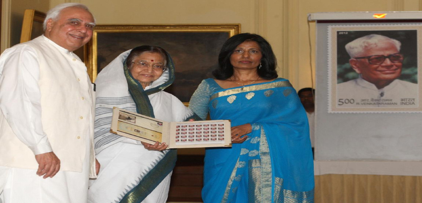 The President of India, Smt Pratibha Devisingh Patil releasing the Commemorative Postage Stamp on the Former President of India, Late Shri R Venkataraman at Rashtrapati Bhavan in New Delhi on April 18, 2012
