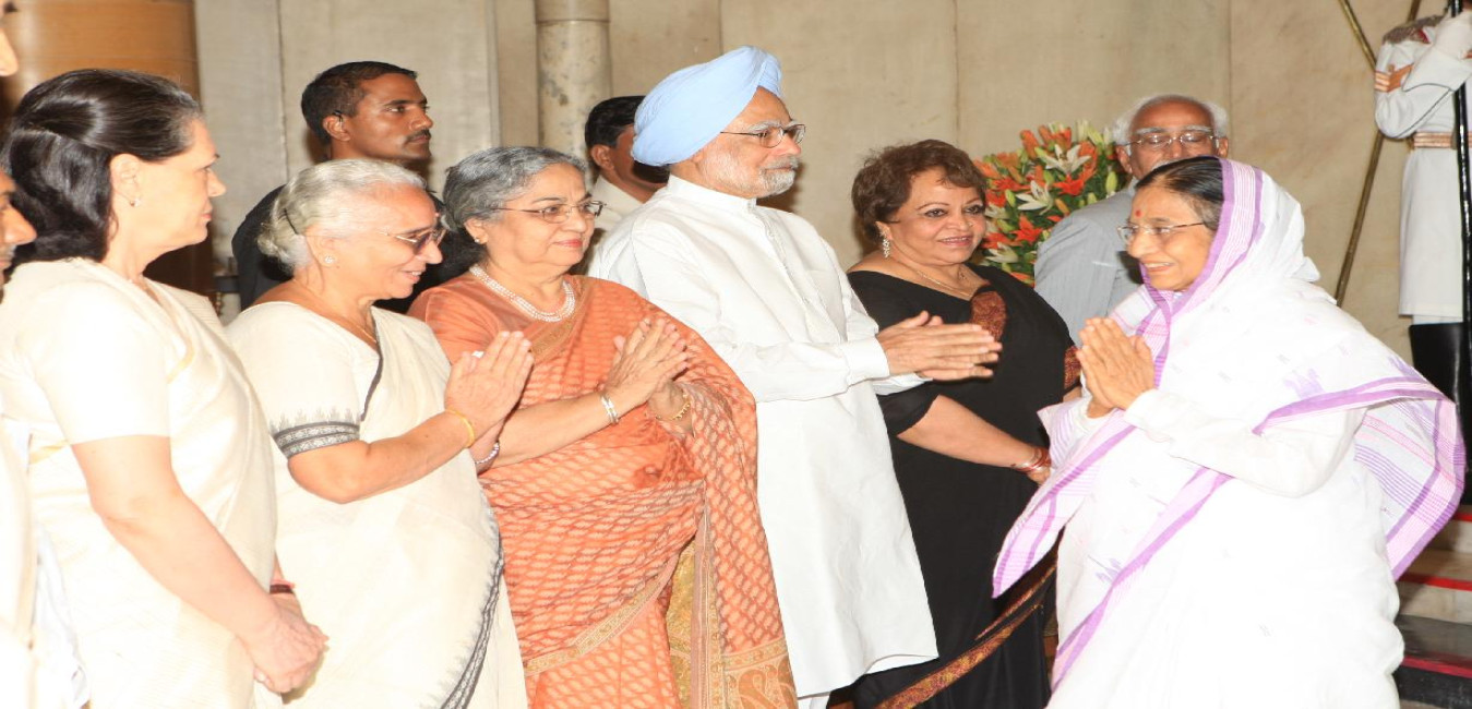 The President of India, Smt Pratibha Devisingh Patil interacting with a Group of Freedom Fighters during 'At Home' Reception which she hosted for them at Rashtrapati Bhavan in New Delhi on Aug 9, 2009
