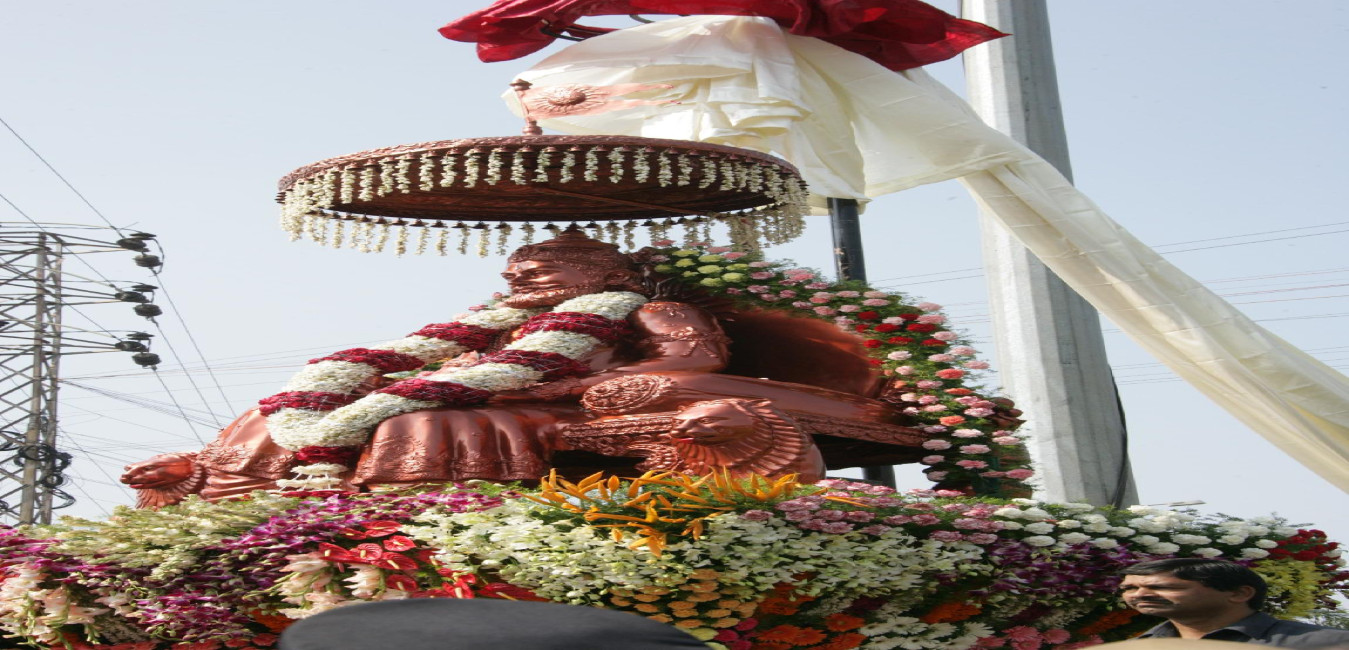 The President of India, Smt Pratibha Devisingh Patil with the Governor of Andhra Pradesh, Shri Narayan Dutt Tiwari and the Chief Minister of Andhra Pradesh, Dr Y Rajashekar Reddy at the statue of Maharaja Agrasen after its unveiling by the President at Hyderabad in Andhra Pradesh on Jan 02, 2009