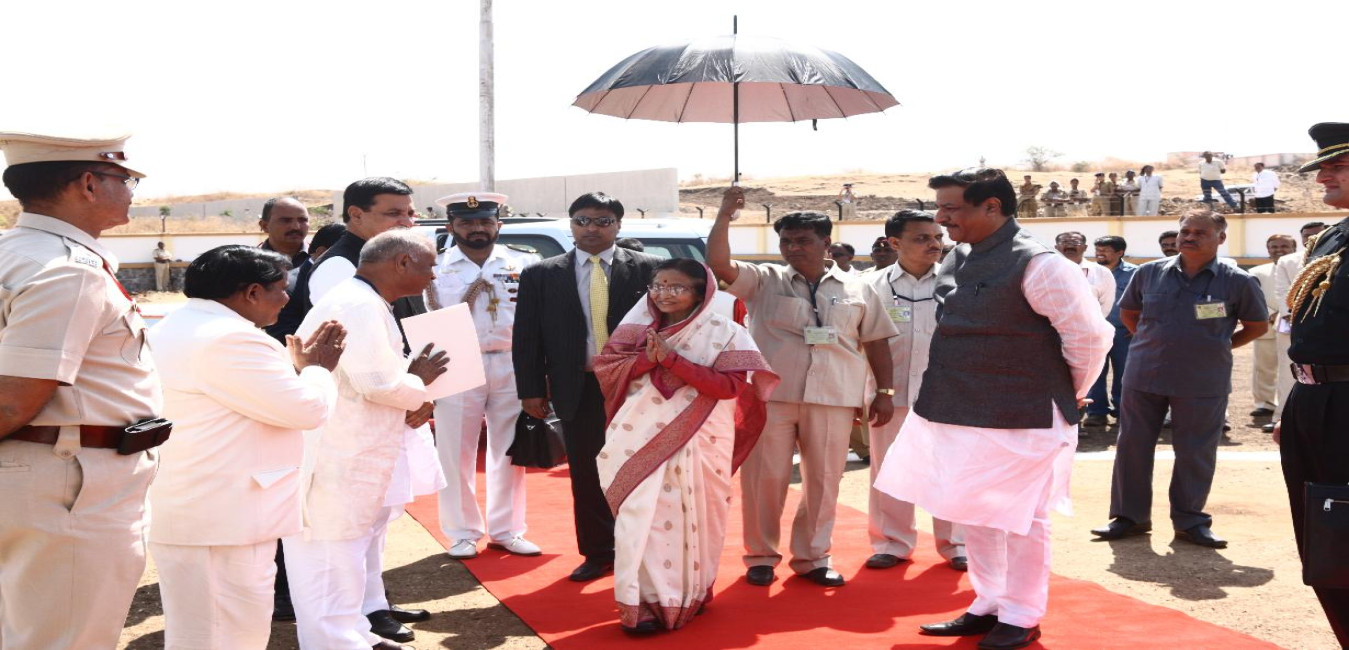 The President of India, Smt Pratibha Devisingh Patil before departure from Nandurbar Helipad in Maharashtra on Feb 24, 2012