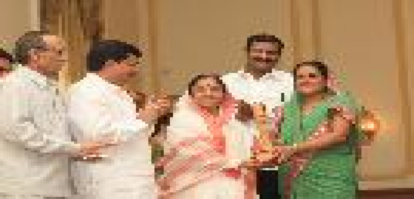 The President of India, Smt Pratibha Devisingh Patil felicitating Smt Roshani Devi, Smt Usha Devi and Smt Tripati Devi of Kothal Khurd Village, Mahendragarh District in Haryana for their work of Banning Consumption of liquor in Public Places in their village at Rashtrapati Bhavan in New Delhi on July 11, 2009