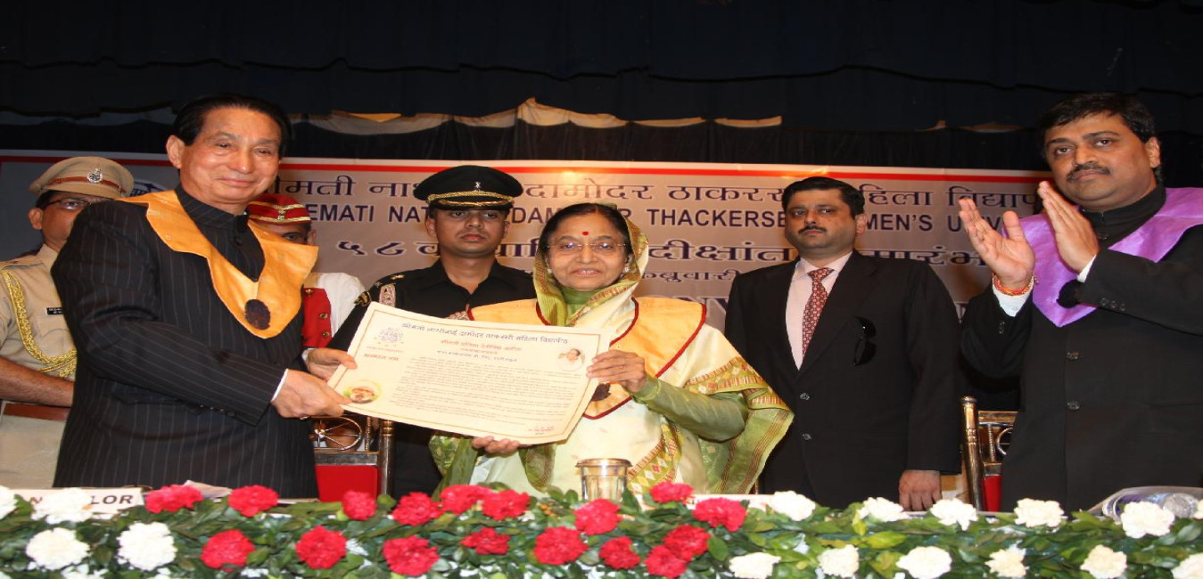 The President of India, Smt Pratibha Devisingh Patil during the Convocation of Shreemati Nathibai Damodar Thackersey Women University and also Paying floral tributes to Maharshi Karve and Chhatrapati Shivaji Maharaj at the 58th Convocation of Smt Nathibai Damodar Thakarsi Women's University at Mumbai in Maharashtra on Feb 07, 2009
