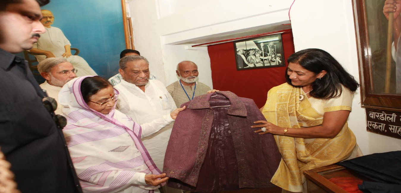 The President of India, Smt Pratibha Devisingh Patil during visit to Sabarmati Ashram and paying homage at the portrait of Mahatma Gandhi at Sabarmati Ashram of Ahmadabad in Gujarat on Oct 01, 2009