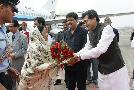 The President of India, Smt Pratibha Devisingh Patil being welcomed by the Governor of Maharashtra, Shri S C Jamir and Chief Minister of Maharashtra, Shri Vilasrao Deshmukh at Chhatrapati Shivaji International Airport of Mumbai in Maharashtra on June 26, 2008