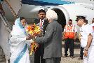 The President of India, Smt Pratibha Devisingh Patil being welcomed by the Governor of Goa, Shri Shivinder Singh Sidhu and Chief Minister of Goa, Shri Digambar Kamat at Goa Airport in Goa on Jan 03, 2011
