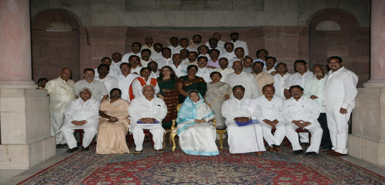 The President of India, Smt Pratibha Devisingh Patil interacting with Shri Siddaramaiah and others at Rashtrapati Bhavan in New Delhi on Aug 16, 2010