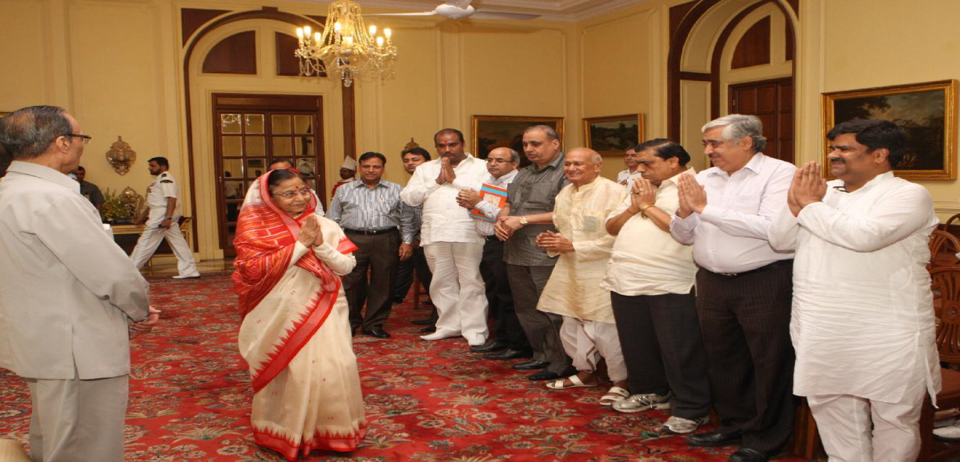 The President of India, Smt Pratibha Devisingh Patil interacting with Shri Subhash Goel from Luv Kush Ramlila Committee at Rashtrapati Bhavan in New Delhi on Sep 9, 2011