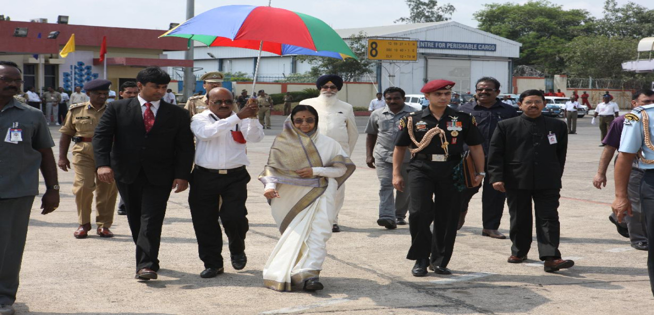 The President of India, Smt Pratibha Devisingh Patil before departure from Chennai Airport in Tamil Nadu on March 21, 2009