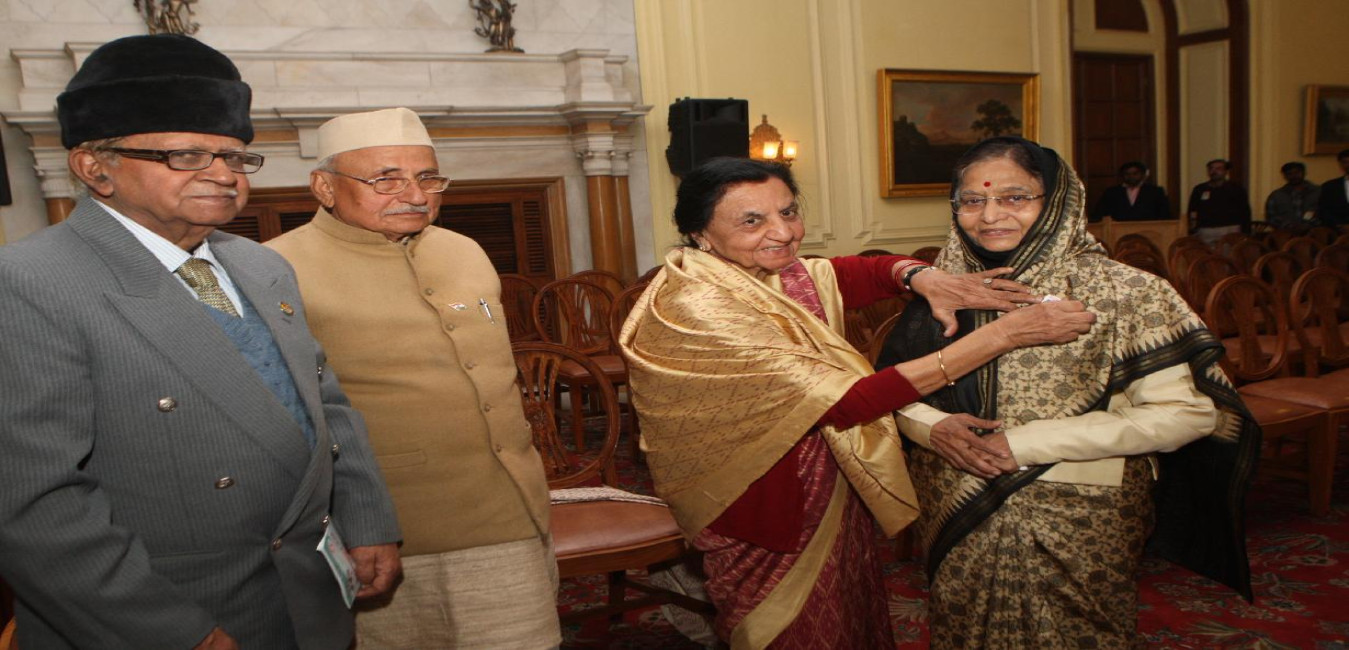 The President of the All India Federation of the Deaf, MS Surrendar Saini during the pinning a Flag on the President of India, Smt Pratibha Devisingh Patil on the occasion of their Flag Week at Rashtrapati Bhavan in New Delhi on Feb 03, 2012