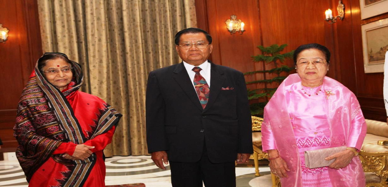 The Chairman of the State Peace and Development Council of the Union of Myanmar Senior General, HE Mr Than Shwe calling on the President of India, Smt Pratibha Devisingh Patil at Rashtrapati Bhavan in New Delhi on June 27, 2010