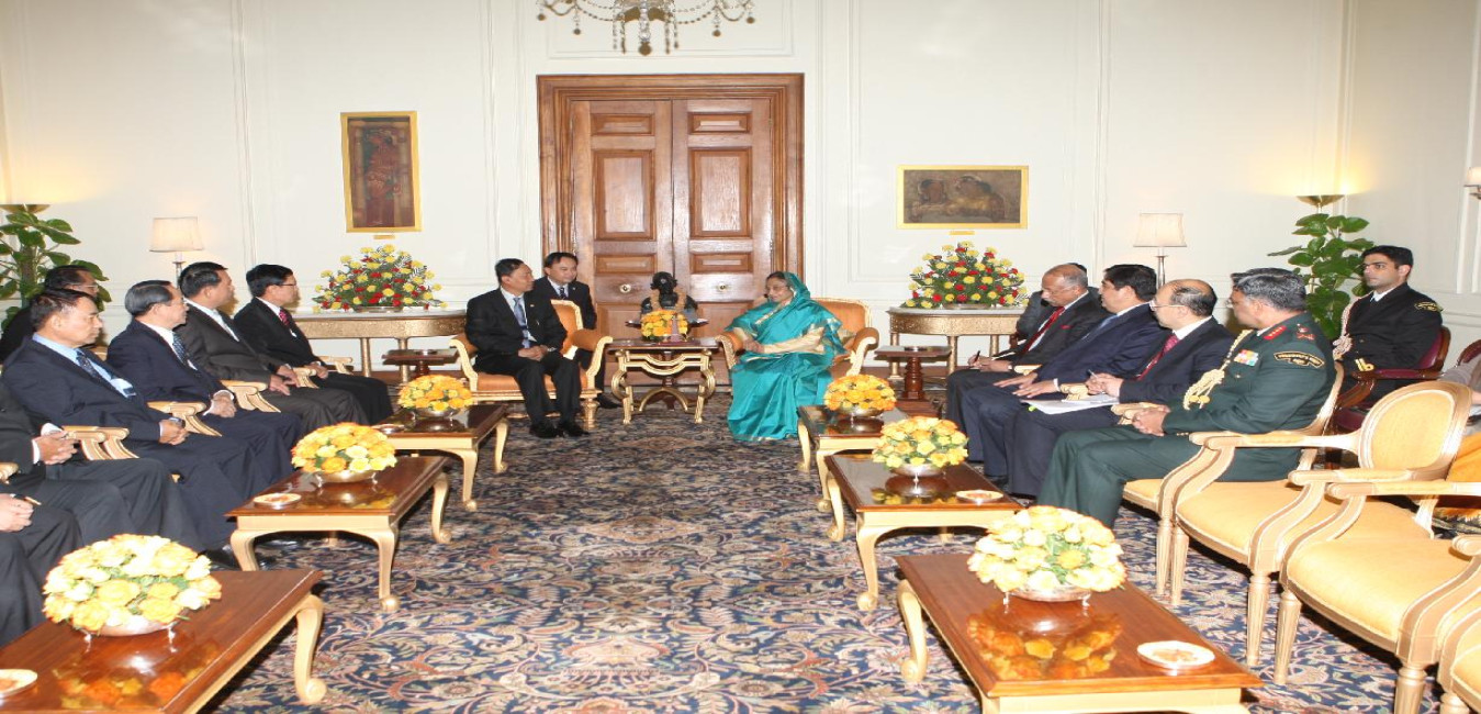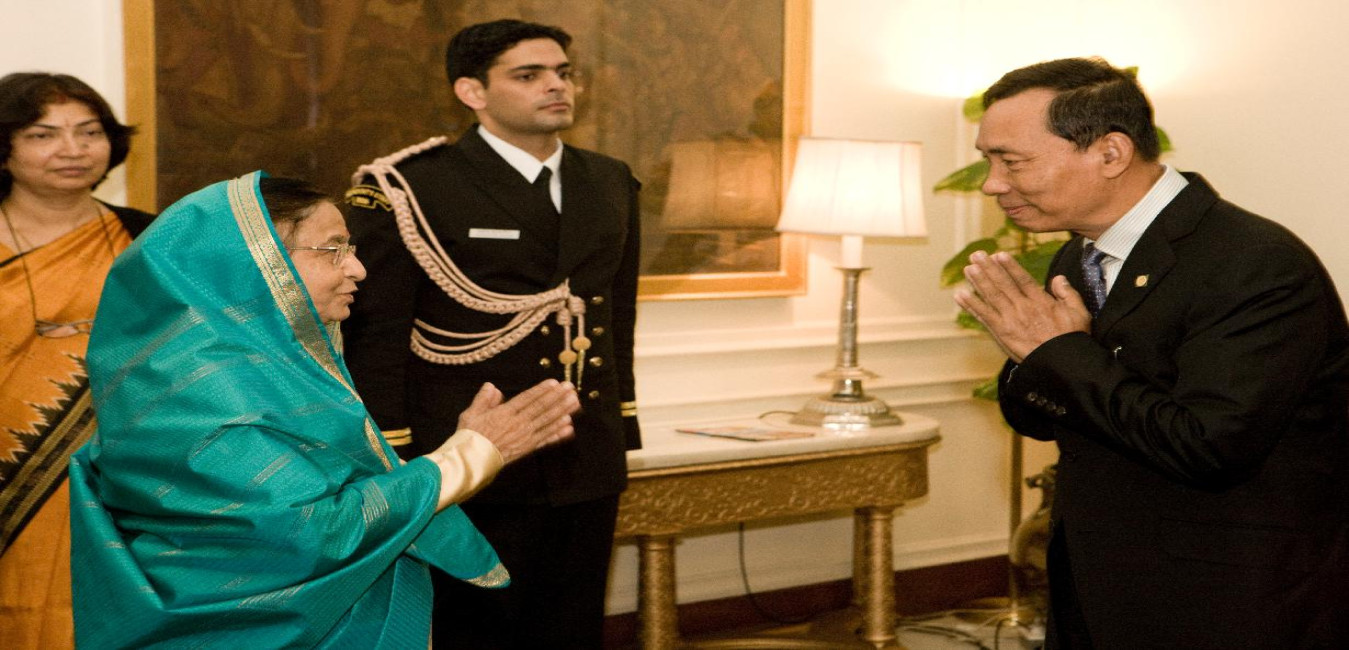 The Speaker of the Pyithu Hluttaw (Lower House of the Parliament of Myanmar), Mr Thura U Shwe Mann calling on the President of India, Smt Pratibha Devisingh Patil at Rashtrapati Bhavan in New Delhi on Dec 14, 2011